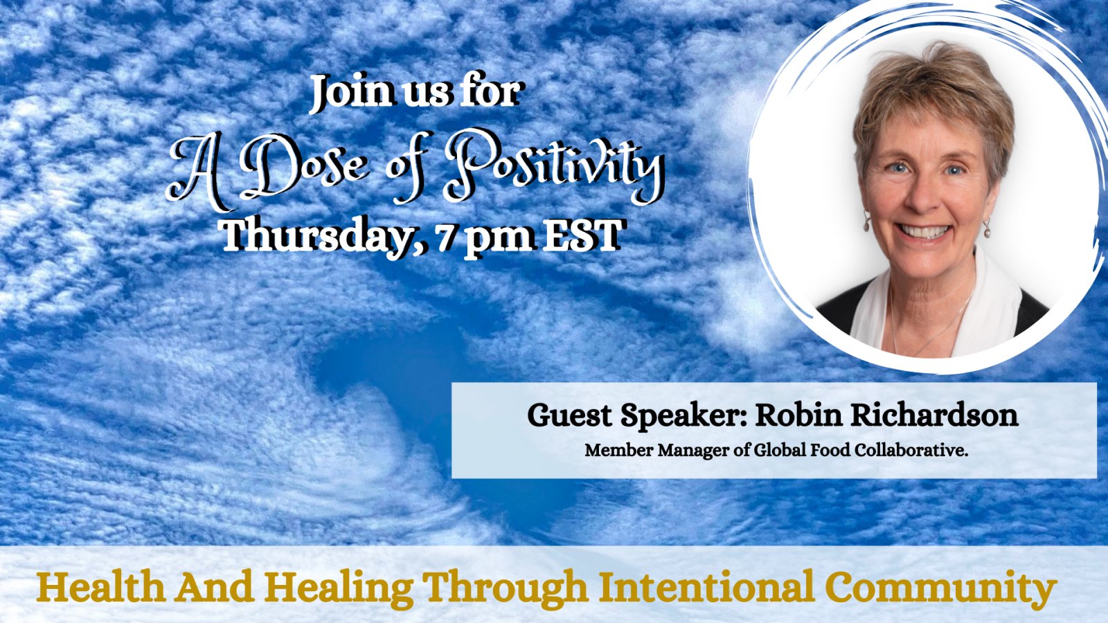 Speaking of community, In our upcoming live broadcast, on "A Dose of Positivity," airing on Thursday, Dec 14th, I am honored to have the remarkable Robin Richardson, founder of the Global Food Collaborative, as our special guest. Together, we'll explore the profound benefits of changing our mindset to embrace purposeful gatherings and making a difference by being different. As we delve into the conversation, we'll uncover the science and statistics supporting the idea that community is not just a key to healthy living and longevity but also a catalyst for positive change. So mark your calendars, spread the word, and let's come together to make things happen, proving once again that our connections have the power to shape a brighter, more fulfilling future.